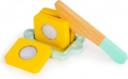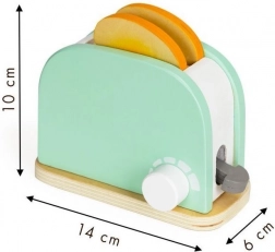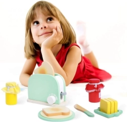 Vi presentiamo uno splendido tostapane in legno con set per la colazione, che offrirà ai vostri bambini ore di gioco creativo. Questo set è progettato per stimolare la loro creatività e permettere di imitare la preparazione di una vera colazione.