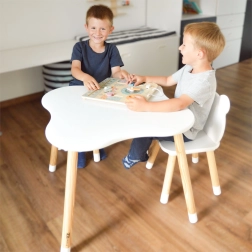 Questo set moderno in legno, nella combinazione senza tempo di bianco e legno naturale, si inserisce splendidamente in qualsiasi cameretta o stanza dei giochi. Le linee arrotondate e l’aspetto giocoso con orecchiette da orso stimolano la fantasia, mentre i materiali robusti assicurano lunga durata e facile pulizia.
