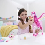 Involati sulle ali della fantasia con il pegaso rosa di Barbie! Questo magico pegaso offre funzioni di luce e suono, accompagnato da un cagnolino magico e dolci accessori.