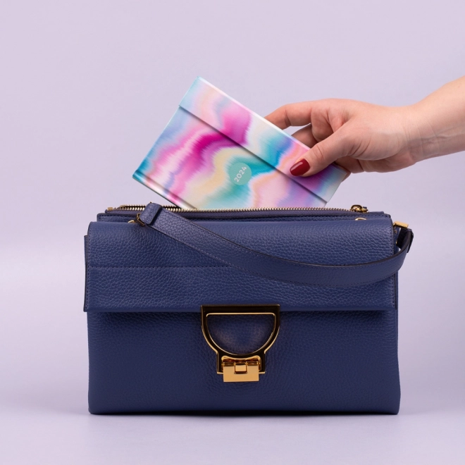 Pianifica con chiarezza ed eleganza. Questa agenda settimanale con chiusura magnetica e delicato design batik unisce stile e funzionalità. Il formato compatto 11 × 16 cm entra in borsa e nello zaino, così avrai sempre l'agenda a portata di mano.