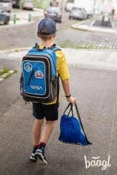 La sacca zaino blu è dotata di un logo NASA evidente, che si illumina al buio e aumenta la visibilità.