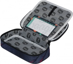 L’astuccio rigido con divisorio ribaltabile, tasca interna con zip e orario scolastico (senza contenuto) è abbinato a una sacca leggera per scarpe o ginnastica con chiusura a coulisse per portarla comodamente a spalla.