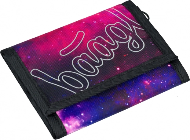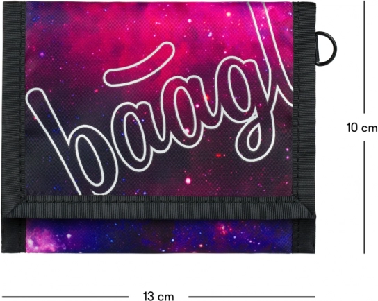 L'elegante portafoglio studentesco Baagl Galaxy in colore viola colpisce per il design moderno e la lavorazione pratica. È realizzato in materiale robusto e resistente, ha una chiusura a strappo e un pratico anello per il fissaggio a un moschettone – ideale per l'uso quotidiano a scuola e nel tempo libero.