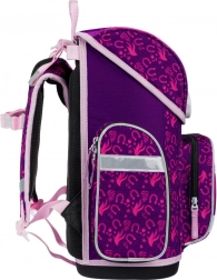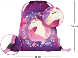 Elegante set scolastico con motivo cavallo per piccoli alunni dalla 1ª classe, comprende una cartella ergonomica, un capiente astuccio e una pratica sacca per le scarpe. La cartella offre schienale ergonomico sagomato e sistema scorrevole ERGO ADJUSTABLE SYSTEM per un adattamento perfetto, chiusura magnetica Fidlock per un'apertura facile, elementi riflettenti per la sicurezza e peso contenuto sotto 1.200 g. Il set si distingue per la lavorazione di qualità, i materiali idrorepellenti e il bellissimo design viola-rosa con motivi di cavalli.