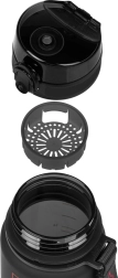 Il coperchio con blocco evita aperture accidentali nello zaino e il meccanismo flip-top permette di bere velocemente con una sola mano. Il filtro rimovibile è perfetto per limonate alla frutta o tè sfusi: il materiale è adatto anche alle bevande calde. Inclusa una cinghia per un trasporto confortevole.