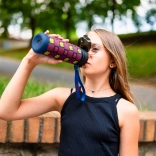 Il pratico laccetto facilita il trasporto e la scala graduata sul corpo della bottiglia aiuta a monitorare l’idratazione per tutto il giorno. Usando la bottiglia in modo ripetuto riduci il consumo di plastica monouso e proteggi la natura.