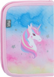 L'astuccio BAAGL Rainbow Unicorn a un piano combina un design adorabile con una suddivisione pratica. Le due alette interne con passanti tengono matite, penne e piccoli accessori scolastici ordinati al loro posto. Il tessuto resistente e la zip di qualità assicurano lunga durata e chiusura sicura.