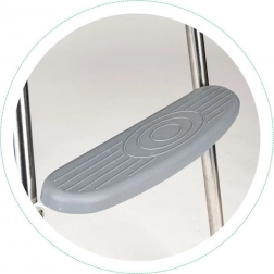 Grazie alla soluzione intelligente, trasformi rapidamente il seggiolone alto in una seduta più bassa: basta svitare una parte delle gambe e il poggiapiedi. È adatto non solo per la pappa, ma anche come spazio sicuro per disegnare e creare senza sporcare l’ambiente circostante. Le gambe in metallo con piedini antiscivolo proteggono il pavimento e assicurano stabilità, mentre le cinture a 3 punti e il blocco antiscesa aumentano la sicurezza.