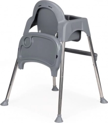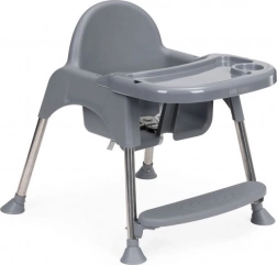 Pratico seggiolone 2 in 1 ECOTOYS per bambini dai 6 mesi. Offre due altezze, vassoio facilmente lavabile e rimovibile con spazio per biberon, gambe in metallo con terminazioni antiscivolo, cinture a 3 punti e seduta sagomata confortevole. Ideale per la pappa e il gioco, con portata massima di 15 kg.