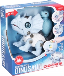 Scopri il divertente dinosauro per piccoli costruttori: triceratopo avvitabile da 13 cm con effetti luminosi e sonori. Grazie al semplice avvitamento e al cacciavite incluso sviluppa la motricità fine, mentre gli effetti luminosi e sonori offrono un divertimento preistorico realistico. Premendo la cresta sulla testa apre la bocca, muove gli occhi e si illumina.