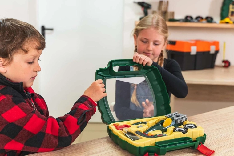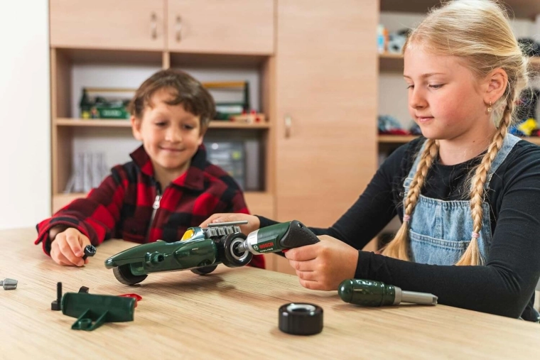 Set di costruzione per bambini di un’auto da corsa in una pratica valigetta con avvitatore a batteria BOSCH Ixolino con licenza del brand KLEIN, per ore di divertimento creativo. I bambini assemblano l’auto in autonomia usando strumenti sicuri e poi possono giocarci. Inclusi pezzi intercambiabili, ruote grandi e adesivi per personalizzare il look. Sviluppa la motricità fine, stimola la fantasia e grazie alla struttura robusta resiste al gioco quotidiano.