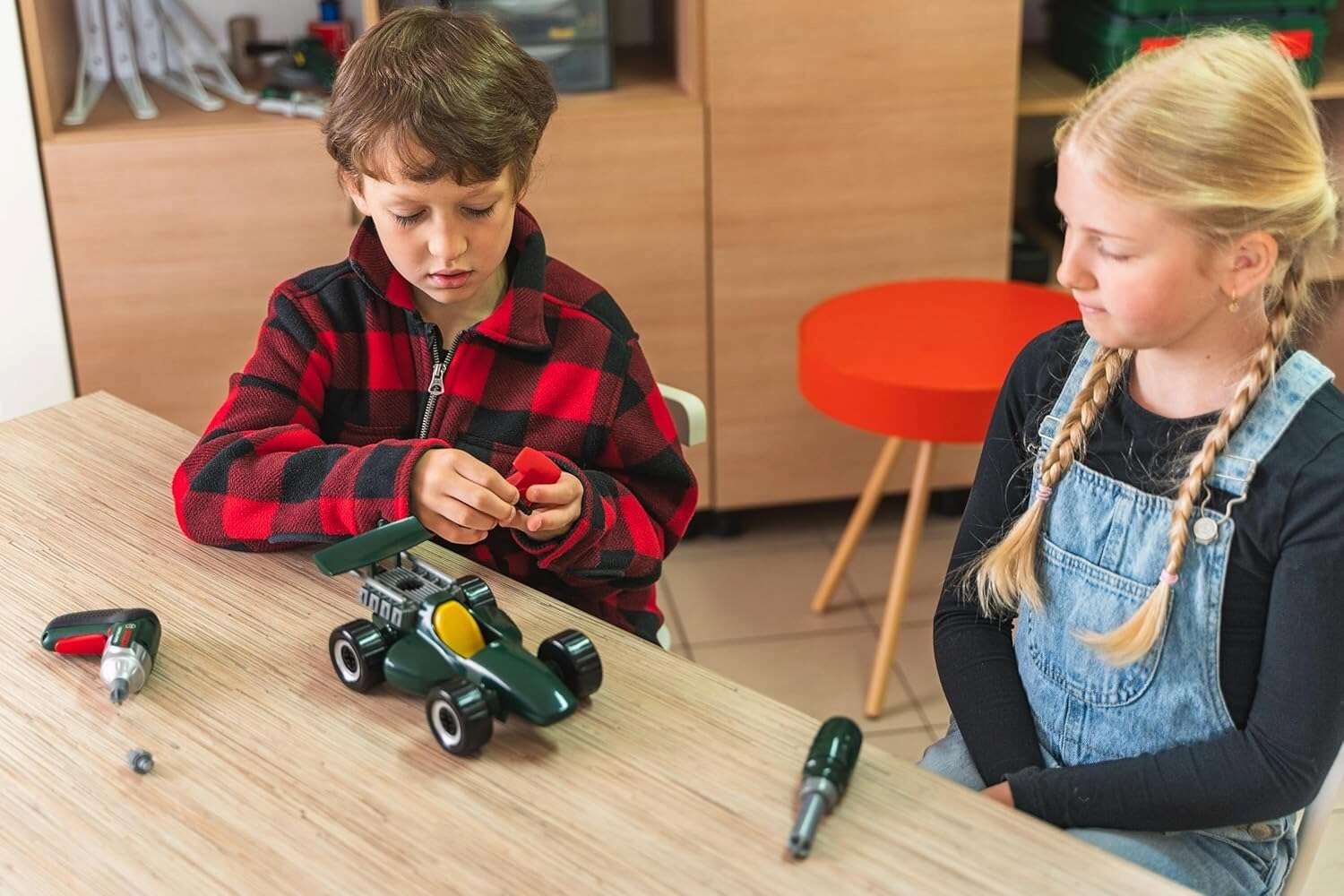 Montare e smontare l’auto è intuitivo e sicuro. I bambini allenano coordinazione occhio–mano, pensiero logico e pazienza, divertendosi con la guida del modello finito. Grazie ai componenti intercambiabili (ad es. spoiler) e agli adesivi, ogni piccolo meccanico può personalizzare il veicolo secondo i propri gusti.