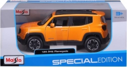 Elegante modello da collezione in scala 1:24 che riproduce l'iconica JEEP Renegade in una vivace colorazione arancione. Presenta carrozzeria in metallo, dettagli in plastica, porte e cofano apribili e ruote liberamente rotanti per una guida realistica e un'esposizione fedele.
