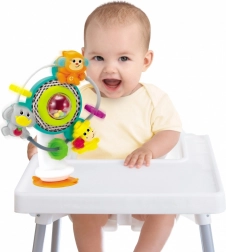 La stabile ventosa permette un fissaggio sicuro del giocattolo a diverse superfici, come seggioloni o tavolini, assicurando che il bambino possa giocare senza interruzioni.