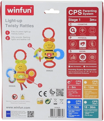 Questa ape colorata è un primo gioco perfetto per i più piccoli. Agitandola emette un piacevole suono da sonaglio; premendo il pulsante centrale si attivano melodie e una lucina lampeggiante che stimolano la curiosità e la percezione sensoriale. La forma ergonomica e i diversi anelli per l’impugnatura facilitano la presa dalle piccole manine.