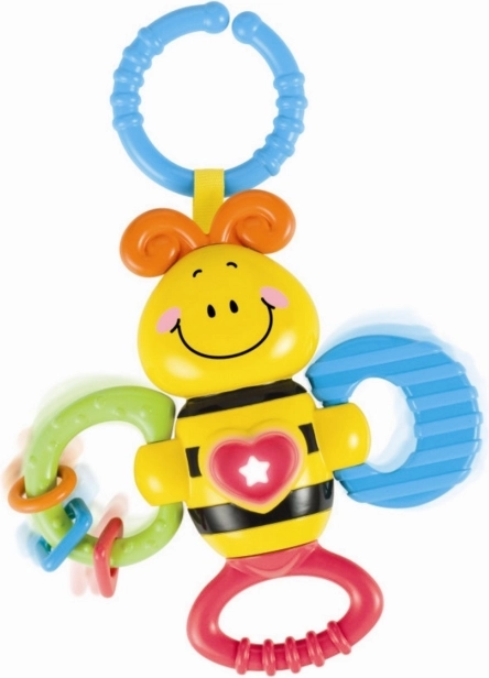 Allegro sonaglio a forma di ape per bebè dai 3 mesi, offre luci, melodie e suoni piacevoli. Grazie ai morbidi massaggiagengive e alla presa confortevole favorisce la motricità fine, lo sviluppo sensoriale e la coordinazione occhio–mano. La realizzazione sicura con materiali di qualità farà felici bambini e genitori.