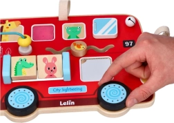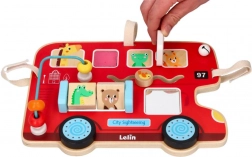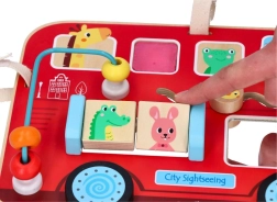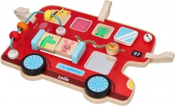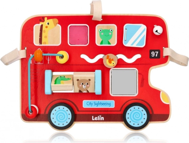 Tavola motoria autobus del marchio Lelin è un giocattolo interattivo in legno a forma di autobus che sviluppa la motricità fine e le capacità cognitive dei bambini dai 12 mesi. È pieno di varie funzioni colorate e divertenti.