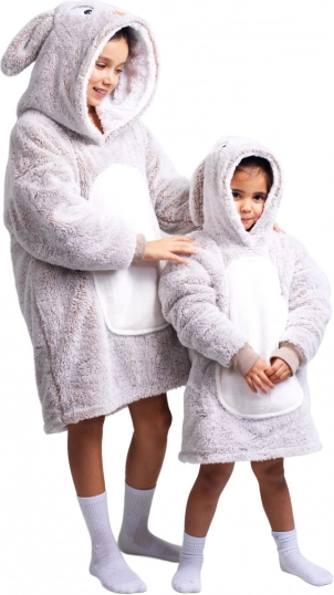Grande felpa con cappuccio a forma di animaletto che funge da coperta riscaldante realizzata in morbido pile sherpa. Offre massimo comfort per bambini dai 3 ai 6 anni con una grande tasca frontale per riscaldare le mani.
