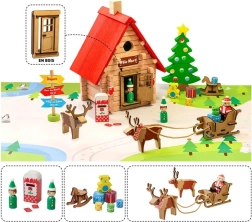 Questo set a tema porta l’atmosfera del Polo Nord direttamente nella cameretta. Costruite lo chalet di Babbo Natale, posizionate le figurine degli elfi, attaccate le renne alla slitta e decorate la scena con l’albero di Natale e i regali. Grazie ai precisi pezzi in legno, la costruzione è divertente e sviluppa motricità fine, pazienza e creatività.