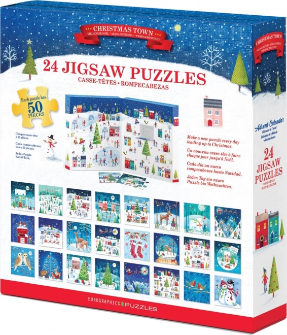 Il calendario dell’Avvento EUROGRAPHICS propone ogni giorno un mini puzzle a tema natalizio. Nella confezione trovi 24 puzzle indipendenti, ciascuno da 50 pezzi, che una volta completati diventano immagini quadrate da 12,5 × 12,5 cm. In ogni finestrella è stampato anche il modello, così l’assemblaggio è piacevole sia per bambini sia per adulti.