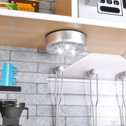 Regala ai bambini una cucina moderna tutta loro, ricca di elementi realistici. L’illuminazione LED può essere posizionata sotto il pensile, nel mobile o nel “forno” per creare un’atmosfera autentica. Ruotando le manopole dei fornelli si sente il caratteristico “click”, che aggiunge una nuova dimensione al gioco.
