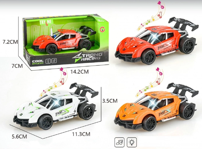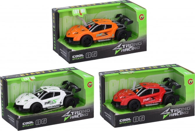 La compatta macchinina da corsa a retrocarica farà felici piccoli e grandi appassionati della velocità. Offre effetti luminosi e sonori attivabili tramite un pulsante nell’abitacolo, è pronta a correre con batterie incluse ed è disponibile in tre varianti di colore.
