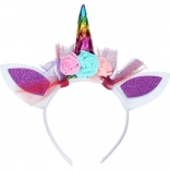 Delizioso cerchietto con corno di unicorno colorato per tutte le piccole fashioniste. Un accessorio perfetto per feste dei bambini, mascherate e foto. Grazie alla struttura leggera e al fissaggio confortevole si indossa bene tutto il giorno. Colori vivaci, corno magico da unicorno e comodità d’uso faranno felice ogni piccola principessa.