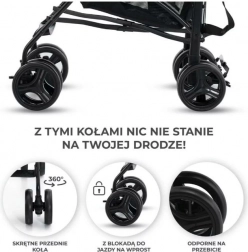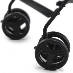 Le ruote resistenti con sospensione gestiscono terreni irregolari senza necessità di gonfiarle. Le ruote anteriori possono essere bloccate per una guida diretta.