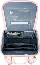 Il nuovo sistema di apertura ribaltabile facilita l’accesso ai libri direttamente dal banco. All’interno trovi una tasca trasparente per l’orario e un organizer con elastico per una distribuzione uniforme del peso e il fissaggio sicuro del materiale.