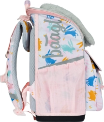 La cartella scolastica BAAGL Zippy Bunny unisce un design giocoso al massimo comfort e alla sicurezza. Grazie al sistema dorsale scorrevole ERGO ADJUSTABLE SYSTEM, al pannello posteriore ergonomico e alle cinghie completamente regolabili su spalle e torace, oltre alle cinghie laterali di compressione, la cartella si adatta perfettamente alla corporatura del bambino. La struttura leggera ma robusta mantiene la forma e i materiali idrorepellenti proteggono il materiale scolastico con ogni condizione meteo.