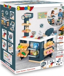 Supermercato con cassa, reparto frutta/verdura, bilancia (nuova bilancia meccanica: il peso visualizzato si aggiorna in base agli alimenti pesati). Il bambino può impostare l’orologio e il pannello aperto/chiuso. Include 42 accessori: pasta, biscotti, cereali, latte, 6 pezzi di frutta e verdura, 1 torta, 2 macarons, 2 lattine, 1 lettore di codici a barre elettronico con suono e luce, 1 carta di credito, 4 scontrini, 9 monete e 12 banconote. La cassa ha un cassetto portadenaro, un microfono e un lettore di carte di credito. Carrello incluso.