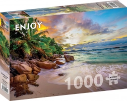Goditi il relax con la splendida immagine di un paradiso tropicale: il puzzle con il motivo delle spiagge delle Seychelles al tramonto offre 1000 pezzi di divertimento e tranquillità. Ideale per gli amanti dei puzzle di qualità e delle attività rilassanti.