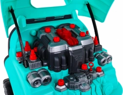 Questo set completo da “piccolo meccanico” include la parte anteriore dell’auto con un motore riccamente accessoriato da montare e smontare, un cruscotto funzionante con pulsante di avviamento, un volante con clacson e segnale di avviso. I bambini possono “fare manutenzione” a candele, ruote e componenti del motore, mentre luci e suoni si controllano con il telecomando incluso.