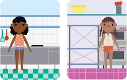Due scenari colorati ispirati a una vera cucina stimolano l’immaginazione e il gioco di ruolo.