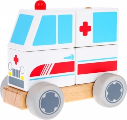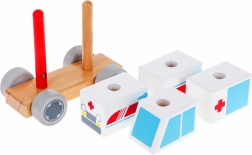 Scoprite la divertente ambulanza in legno per bambini dai 2 anni. Il giocattolo è composto da una base e quattro blocchi colorati che si infilano sui pioli per creare il veicolo. Grazie alle ruote mobili, l’ambulanza è completamente funzionante e favorisce la motricità fine, la coordinazione occhio–mano e il pensiero logico. Tutte le parti sono in legno e colorate con vernici atossiche.