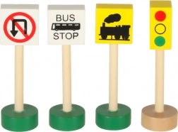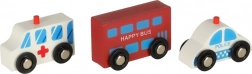 Questo set in legno permette ai bambini di creare la propria città con vari veicoli ed edifici.