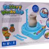 | Il set del piccolo vasaio è un giocattolo educativo per realizzare e dipingere recipienti in ceramica. I bambini possono creare i propri vasi, tazze o brocche e poi decorarli con colori a loro piacimento. Il tornio in ceramica gira a due velocità, lenta e veloce. Il giocattolo stimola la fantasia e sviluppa abilità manuali, destrezza e capacità artistiche. Adatto a bambini dagli 8 anni in su e dotato di certificazione CE. Il giocattolo è alimentato da batterie tipo 3 x R14 (non incluse). | |