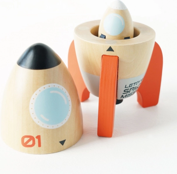 Il set di razzi spaziali di Le Toy Van è un regalo ideale per i piccoli esploratori. Questo set in legno include due razzi - uno più grande con coperchio magnetico apribile e un razzo più piccolo all'interno. Tutti i componenti sono realizzati in legno certificato FSC e dipinti con vernici non tossiche a base d'acqua, rendendoli sicuri per i bambini.