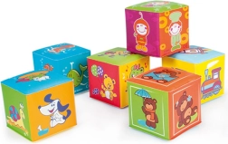 Allegre illustrazioni di animaletti e oggetti su ogni lato dei cubi guidano naturalmente il bambino a nominare e riconoscere il mondo che lo circonda. La morbidezza è delicata sulle manine e sui dentini; i cubi sono leggeri, facili da afferrare e si impilano in modo sicuro in alte torri.