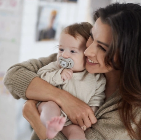 Il succhietto dinamico LOVI è stato sviluppato in collaborazione con neuro-logopedisti per garantire uno sviluppo naturale e sano del palato, dei denti e delle gengive del bambino. Il succhietto LOVI in silicone simmetrico e dinamico è stato testato clinicamente. Tutti i succhietti LOVI non contengono bisfenolo A. Tutti i succhietti LOVI sono realizzati in silicone, materiale insapore e inodore. I succhietti in silicone hanno una maggiore durata e sono più facili da mantenere puliti. L’esclusiva tettarella dinamica simmetrica si sfiata molto bene e non deforma il palato del bambino: - previene il riflesso di mordere il succhietto - consente una deglutizione naturale della saliva - favorisce il sano sviluppo del linguaggio e la formazione del morso - non deforma il palato del bambino - si sfiata molto bene. La tettarella dinamica è realizzata con strati eterogenei di silicone, per cui si allunga e si contrae in base al ritmo di suzione del bambino. La forma simmetrica ricorda il capezzolo materno. La forma della tettarella consente inoltre di inserire il succhietto nella bocca del bambino in qualsiasi posizione (non ha un lato superiore o inferiore). Il profilo sagomato e intagliato dello scudo permette al bambino di respirare liberamente con il naso. È realizzato in materiale sicuro, privo di BPA. Il bordo unico dello scudo è in materiale medicale, piacevole al tatto e previene i segni di pressione del succhietto. Le aperture nello scudo consentono la circolazione dell’aria, eliminano l’accumulo di saliva dietro lo scudo e prevengono l’irritazione della delicata pelle del bambino. L’anello del succhietto è saldamente fissato, facilita l’impugnatura e la somministrazione del succhietto. È possibile agganciarvi una catenella o un cordoncino. I succhietti sono dotati di un esclusivo anello di sicurezza che si illumina al buio. Per motivi igienici, il succhietto è dotato di un cappuccio in plastica. La scatolina in plastica funge da custodia per la conservazione igienica dei succhietti. Il succhietto LOVI ha ricevuto un premio dai consumatori finali. I succhietti sono forniti in molte moderne fantasie di colore. La confezione contiene: 2 pz succhietto dinamico LOVI, 2 pz cappuccio in plastica per succhietto, 1 pz scatolina in plastica. Istruzioni per l’uso: Prima del primo utilizzo sterilizzare il succhietto per motivi igienici in acqua bollente per circa 5 minuti. Dopo il raffreddamento, spremere l’acqua residua dalla tettarella. Prima di ogni utilizzo lavare il succhietto in acqua calda. Non utilizzare alcun disinfettante chimico! Alte concentrazioni di tali prodotti possono danneggiare le parti in plastica del succhietto. Non immergere mai il succhietto in sostanze zuccherate o in medicinali: si espone il bambino al rischio di carie dello smalto. Utilizzare il succhietto per un massimo di 1-2 mesi, poi sostituirlo per motivi igienici e di sicurezza. Se il succhietto entra completamente nella bocca del bambino, NON FATEVI PRENDERE DAL PANICO: il succhietto è progettato in modo tale che il bambino non possa ingoiarlo e in tali casi potete rimuoverlo in sicurezza. Rimuovere il succhietto con la massima delicatezza possibile. Conservare il succhietto in un astuccio pulito, asciutto e chiuso. Non consigliamo l’uso del succhietto per bambini di età superiore ai 3 anni. Avvertenza! Importante per la salute e la sicurezza del vostro bambino! Controllare la qualità del succhietto prima di ogni somministrazione al bambino. Prestare particolare attenzione al succhietto dopo la comparsa dei primi dentini. Verificare la qualità della tettarella tirandola accuratamente in tutte le direzioni. Ai primi segni di danneggiamento, gettare immediatamente il succhietto e non utilizzarlo oltre. Usare solo portaciucci conformi alla norma EN12586. Non fissare mai il succhietto con cordini, lacci o nastri degli indumenti. Il bambino potrebbe soffocare. Non lasciare il succhietto alla luce diretta del sole, vicino a fonti di calore o in disinfettanti più a lungo del tempo raccomandato: si potrebbe indebolire la tettarella. Tenere il cappuccio rimosso fuori dalla portata dei bambini per evitare possibili rischi di soffocamento. Il succhietto in silicone è conforme a: Direttiva 2001/95/CE del Parlamento Europeo e del Consiglio sulla sicurezza generale dei prodotti, EN 1400 - 1 Prodotti per la cura del bambino - Succhietti per lattanti e bambini piccoli - Parte 1: Requisiti generali di sicurezza e informazioni sul prodotto, EN 1400 - 2 Prodotti per la cura del bambino - Succhietti per lattanti e bambini piccoli - Parte 2: Requisiti e prove meccaniche, EN 1400 - 3 Prodotti per la cura del bambino - Succhietti per lattanti e bambini piccoli - Parte 3: Requisiti e prove chimiche.