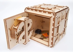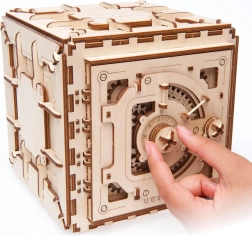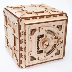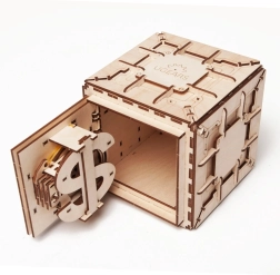 Include una serratura a combinazione con possibilità di impostare un codice personale (preimpostato su 3–2–1). La cassaforte è ideale per riporre piccoli oggetti, monete o carte ed è al contempo una decorazione elegante e un sussidio educativo per comprendere i principi della meccanica. Consigliato per costruttori dai 14 anni.