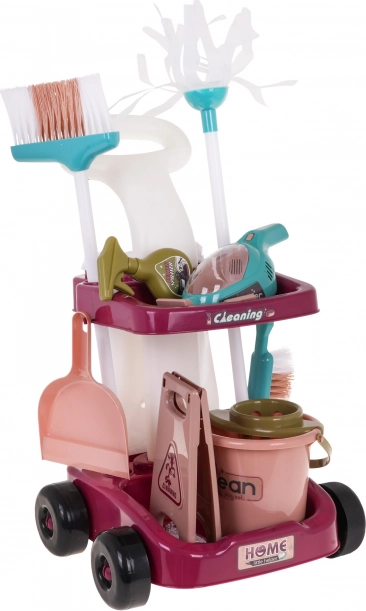 Carrello per le pulizie con aspirapolvere manuale e accessori