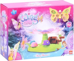 Una figurina colorata con ali appariscenti e una base a forma di fiore invita a lunghe sessioni di gioco nel mondo fiabesco di WING FAIRIES.