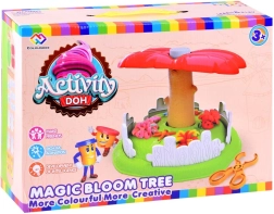 Il set contiene tutto il necessario per creare il proprio albero con supporto, quattro vasetti di plastilina colorata e accessori per pressare le forme.