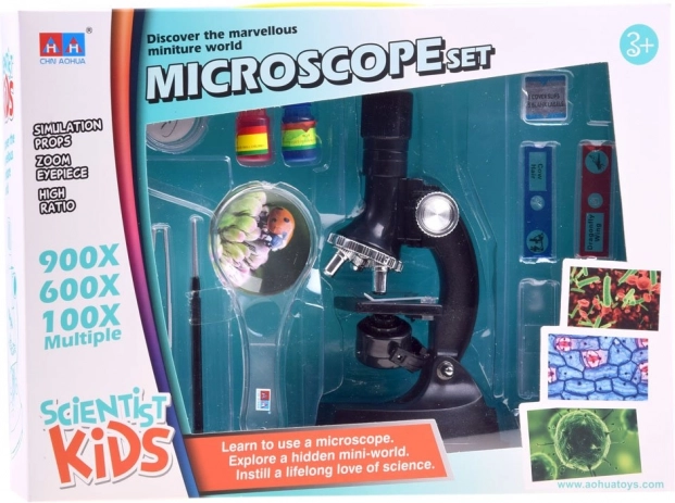 Scopri il microcosmo con il set microscopico per bambini, che offre ingrandimenti 100×/600×/900×, ricchi accessori e un utilizzo semplice. Ideale come strumento educativo per scuola e casa – sviluppa curiosità, pensiero scientifico e motricità fine. L’alimentazione è garantita da 2× batterie AA (non incluse).