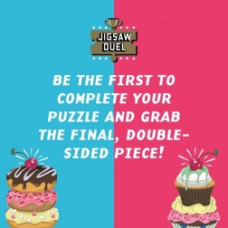 Scegli il tuo team – donut o cupcake – e dai il via alla gara per il titolo di montatore più veloce. Ognuno compone il proprio puzzle, ma a decidere il vincitore sarà l’ultimo pezzo bifacciale, comune a entrambi i puzzle e in attesa sul supporto in legno.