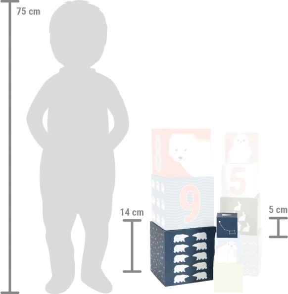 Presentiamo i blocchi impilabili Arctic unici, che combinano educazione e gioco. Con dieci blocchi realizzati in cartone resistente con certificazione FSC, offrono ai bambini un'opportunità divertente di acquisire le basi di numeri, colori e dimensioni. Ogni blocco è decorato con un motivo di animali polari e un numero, stimolando non solo la creatività ma anche la motricità fine dei piccoli costruttori.