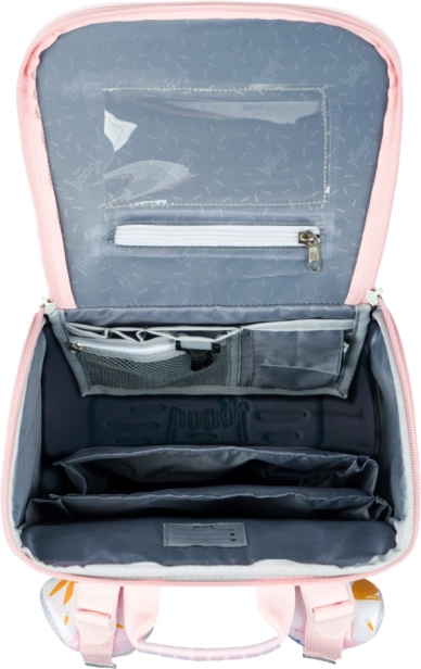 Il set BAAGL Zippy Bunny unisce un design giocoso all’attenzione per il trasporto salutare e l’ordine. La cartella con ERGO ADJUSTABLE SYSTEM scorrevole si adatta alla crescita del bambino, ha schienale rinforzato ed ergonomico, spallacci completamente regolabili e una struttura leggera e stabile. Il nuovo sistema di apertura a ribalta facilita l’accesso ai libri direttamente dal banco.