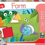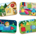 Questo gioco migliora l'attenzione dei bambini, stimola la loro immaginazione e insegna loro a riconoscere le forme geometriche e i colori di base in diversi ambienti: in fattoria, nella sala giochi, nel prato e nello spazio.