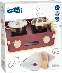 Questo fornello da campeggio multifunzione in legno SMALL FOOT è progettato per offrire il massimo divertimento e favorire lo sviluppo delle abilità. I bambini possono alternare cottura, cottura al forno, grigliatura e lavaggio grazie alla struttura bifacciale, in cui la parte superiore e inferiore fungono da fornello o lavello. Il legno di qualità, combinato con metallo e tessuti, garantisce resistenza e lunga durata.
